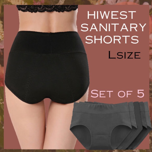 【送料無料】ハイウエストサニタリーショーツ5枚セット!Lサイズのみ!吸水性抜群の多層構造の生理の時安心パンツ!