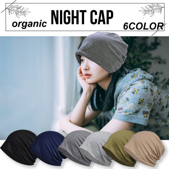 【送料無料】ナイトキャップ(医療用にも)オーガニックコットン100%使用。6色展開で男性にも女性にも。カジュアルにお洒落に小顔効果を狙ってもOK。