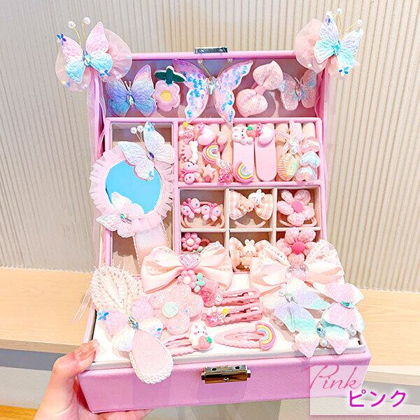 【ジュエリー BOX ゴージャス セット】 ピンク ブルー リボン 指輪 おもちゃ ヘアアクセサリ ヘアピン 子ども 子供 女の子 ギフト クリスマス プレゼント